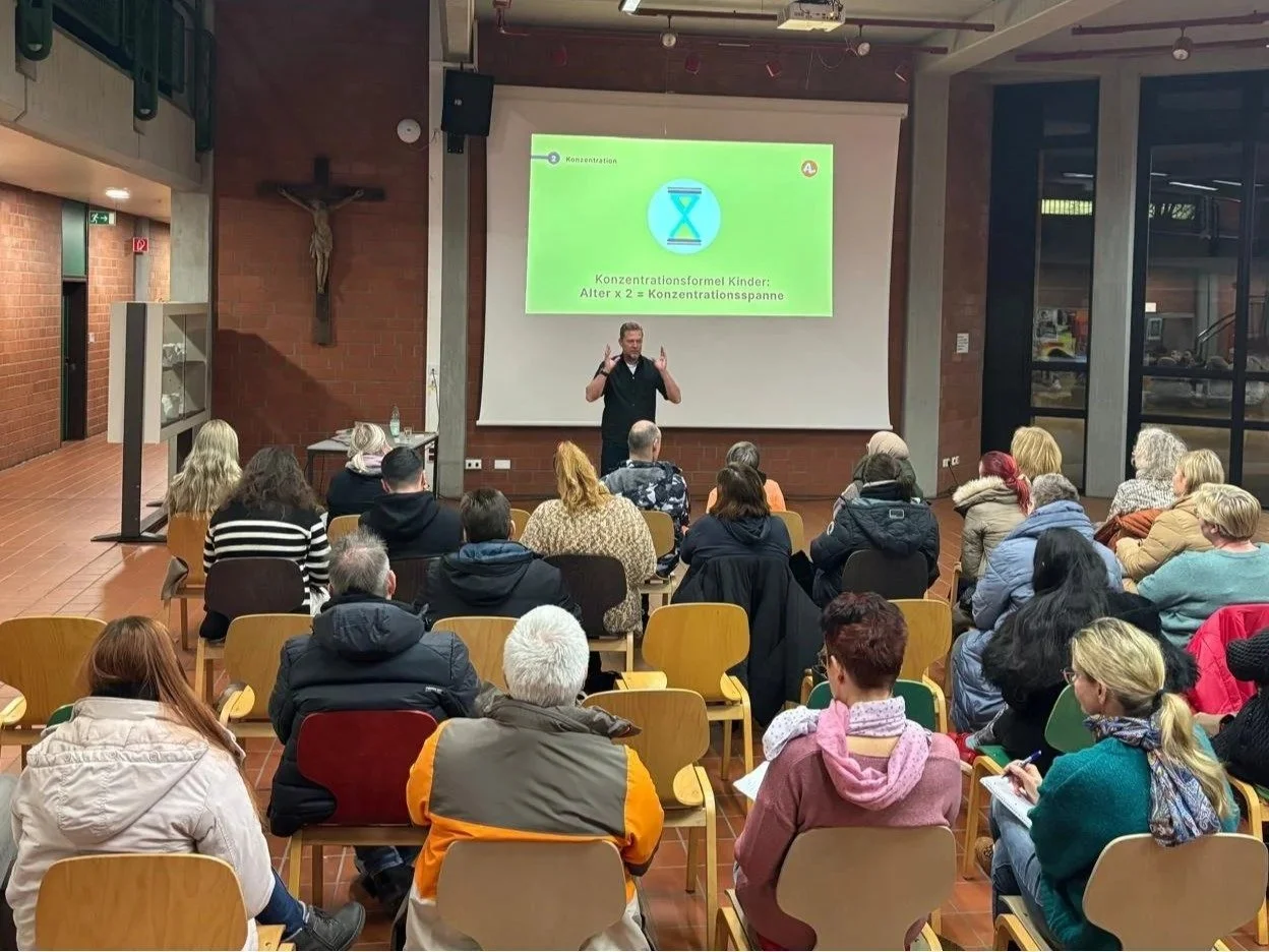 Am vergangenen Montag, den 13. Januar 2025, fand im Forum der Overbergschule Ahlen die Elternfortbildung „Entspannter Lernen zu Hause“ statt. Zahlreiche Erziehungsberechtigte waren der Einladung der Akademie für Lernpädagogik gefolgt, um sich über neue Lerntechniken und praktische Tipps für den schulischen Alltag ihrer Kinder zu informieren.