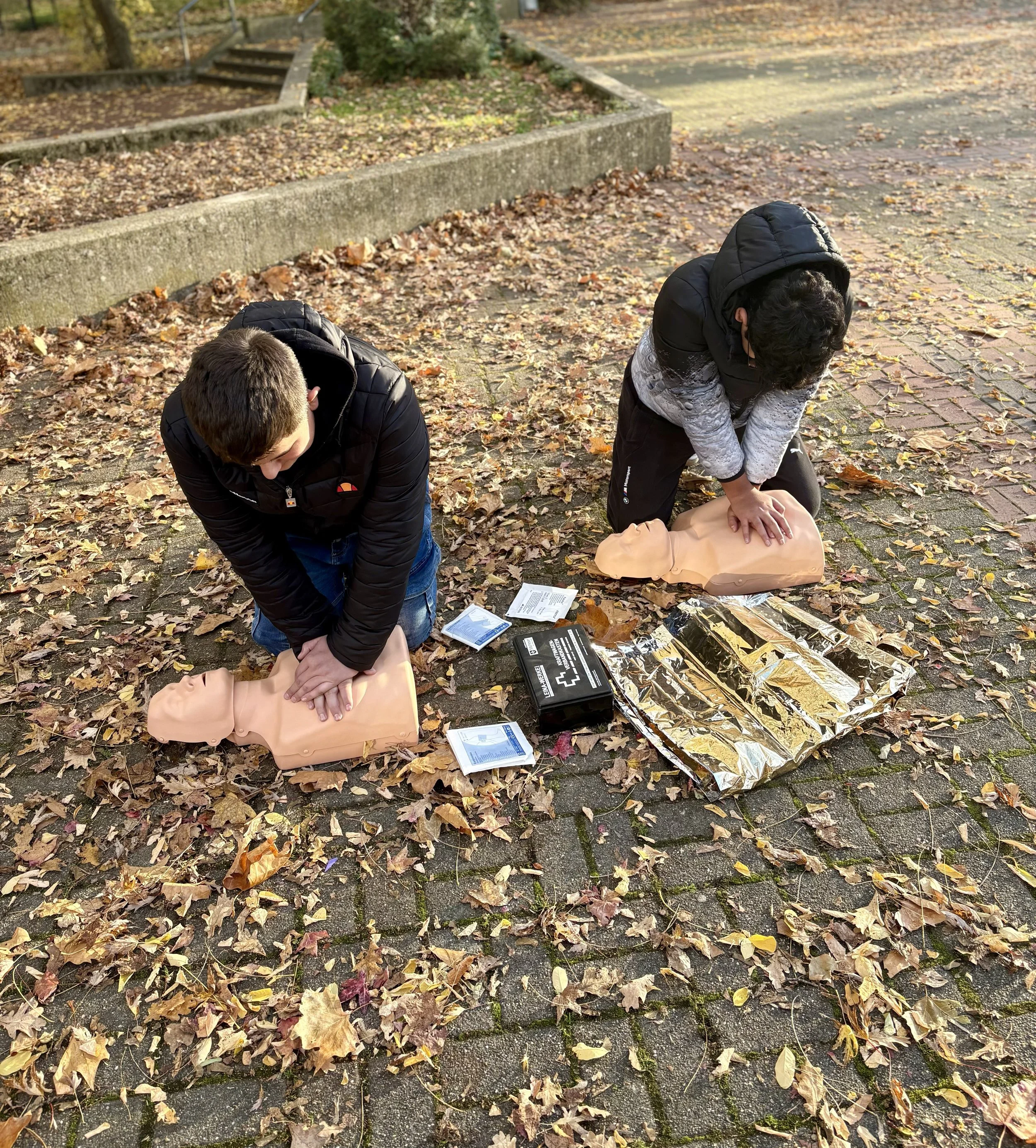 In der Schulsanitätsdienst-AG lernen sie in einem Erste-Hilfe-Kurs alles Wichtige rund ums Helfen: Verbände anlegen, stabile Seitenlage, Herz-Lungen-Wiederbelebung und vieles mehr. In realistischen Übungssituationen wird das Gelernte direkt ausprobiert – mit Spaß, Teamgeist und echtem Einsatz.